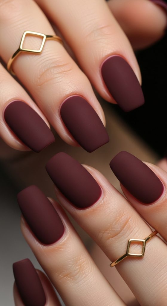 Matte nails are a modern take on classic shades. A deep burgundy matte manicure looks both understated and luxurious, allowing the richness of the color to take center stage without any distractions. This finish is perfect for those who appreciate simplicity but still want a high-fashion look.