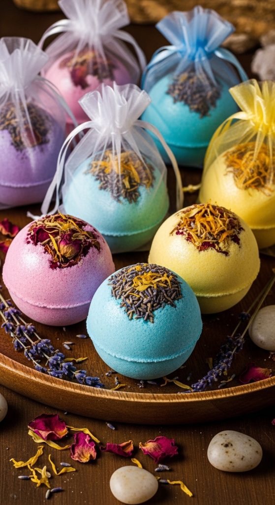 Bath bombs are not only fun to make but also offer a moment of indulgence. Mix natural ingredients like essential oils, dried petals, and mica powders to create colorful, fragrant bath bombs. Package them in organza bags or elegant boxes for a high-end feel that will delight anyone who opens them.