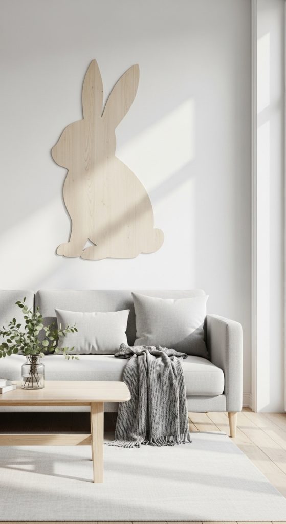 Arrange multiple bunnies in different sizes, as if they are hopping across the wall. Keep colors neutral — white, beige, or soft gray — for a sophisticated look.