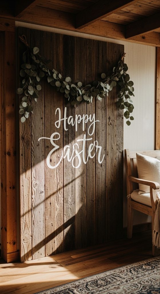 If you love farmhouse charm, a wooden Easter sign is the perfect statement piece. Look for reclaimed wood boards with hand-painted phrases like “He Is Risen,” “Happy Easter,” or “Hello Spring.”